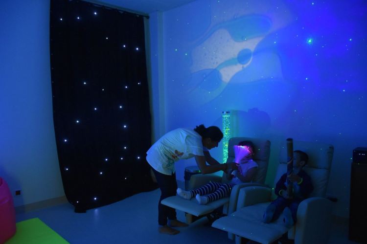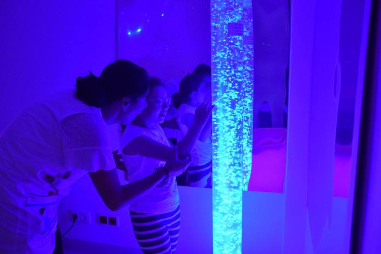Num ambiente acolhedor e repleto de estimulação sensorial, promove-se o relaxamento, a comunicação e a descoberta de novos sentidos.