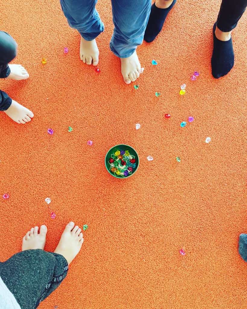 O brincar relaxante, o faz-de-conta refletido. O Ioga estimula diversos sentidos.